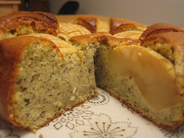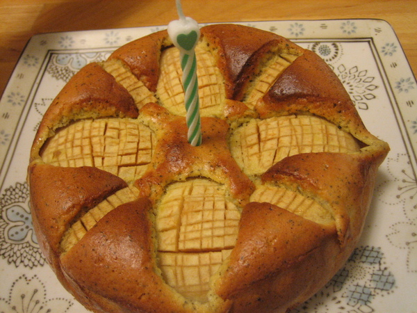 下面是我自己烤的生日蛋糕。食譜參考自在生活的紅茶蘋果乳酪雪藏蛋糕