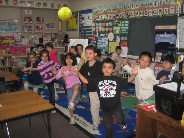 照片正前方那個眼睛張得很大的小朋友是埃及人,班上還有中國、寮國、巴勒斯坦、土耳其...等國人